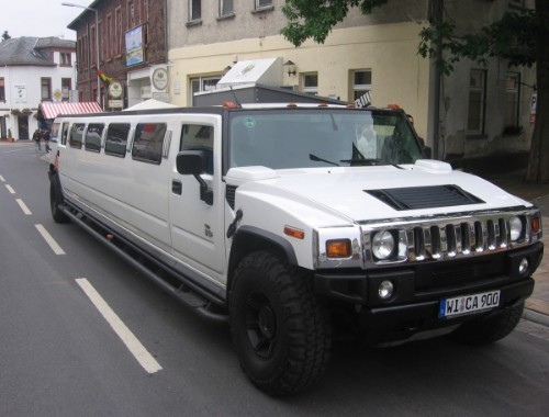 Wie ich da so sitze und Selbold dabei zuschaue, wie es sich erst allmählich füllt, fährt mir gleich die erste Ungeheuerlichkeit des Tages vor die Augen: Ein Hummer. Also nicht so ein delikatessverurteiltes Krebstier, sondern eine berühmte Sorte Jeep aus Amerika. Und dieser hier fährt als weiße Limousine vor, schauen Sie selbst.